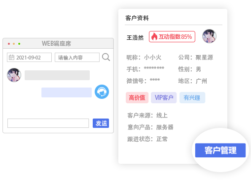 在企業(yè)微信聊天過程中,利用聊天側(cè)邊欄,展示客戶信息、服務(wù)軌跡、客戶畫像等信息,可進(jìn)行自定義備注、同步客戶信息等操作。